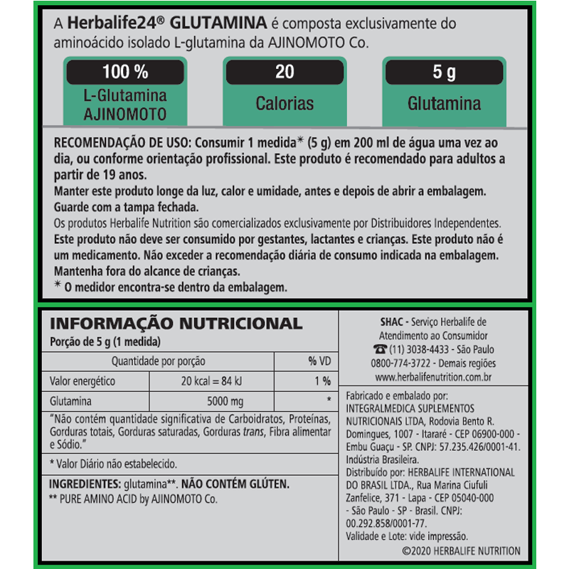 ✔ L-glutamina da AJINOMOTO Co., reconhecido internacionalmente por seu padrão de qualidade.