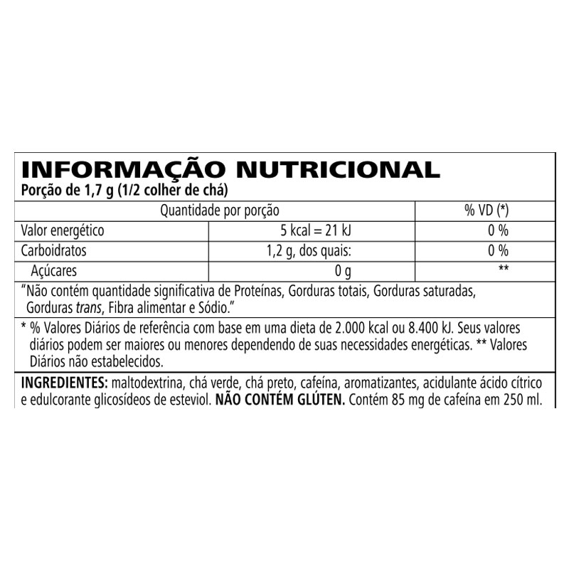 As Bebidas Herbal Concentrate* contribuem com a hidratação diária. Sua combinação de cafeína, chá verde e chá preto têm baixas calorias e pode ser consumida durante o gerenciamento de peso, além de possuir efeito termogênico, efeito natural da cafeína.VOCÊ SABIA?