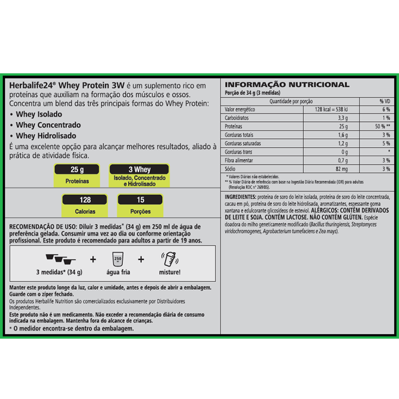 Whey Protein 3W Chocolate 510g - 24 Hours - Herbalife